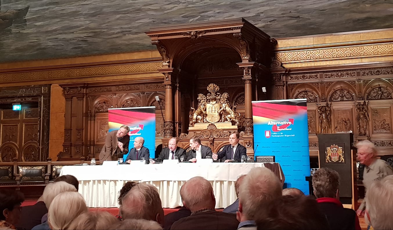 Am 20. Dezember 2019 waren Tino Chrupalla, einer der beiden neugewählten Bundessprecher, sowie Dr. Nikolaus Fest zu Gast im Hamburger Rathaus. Im vollbesetzten Saal ging es um die Europapolitik, und den Umgang der Altparteien mit der AfD. Hier einige Impressionen vom Besuch unseres Kreisverbandes bei der Veranstaltung.