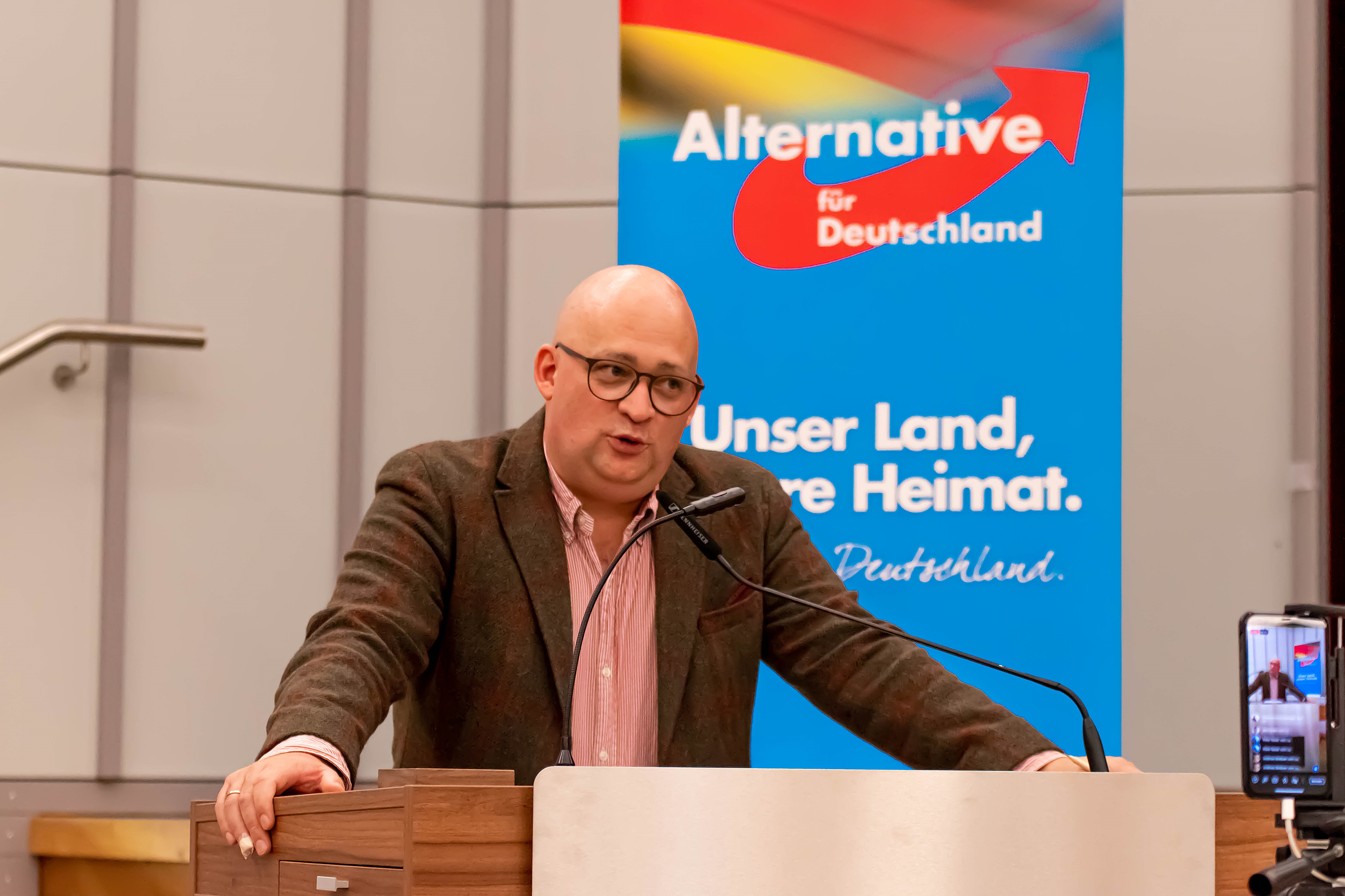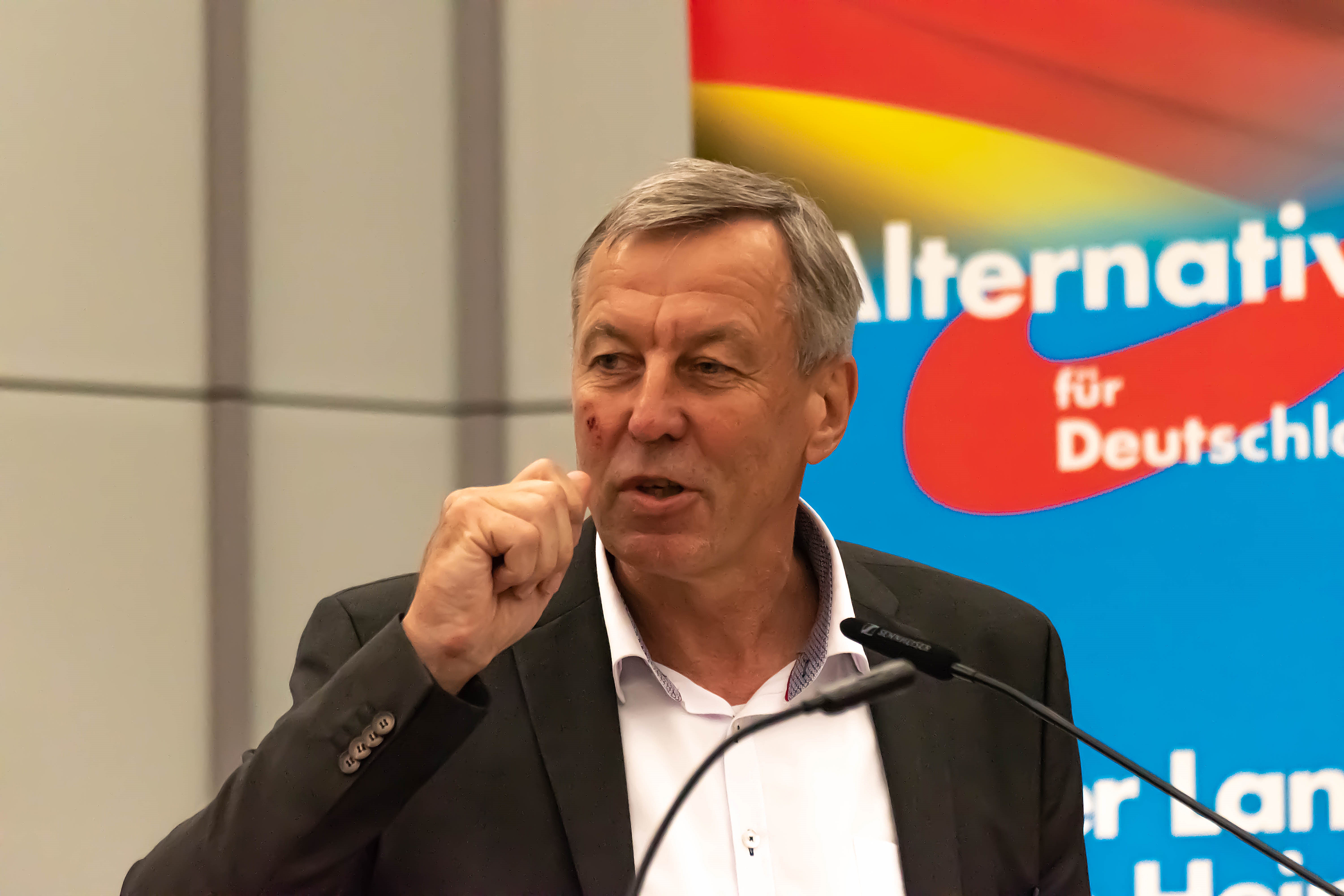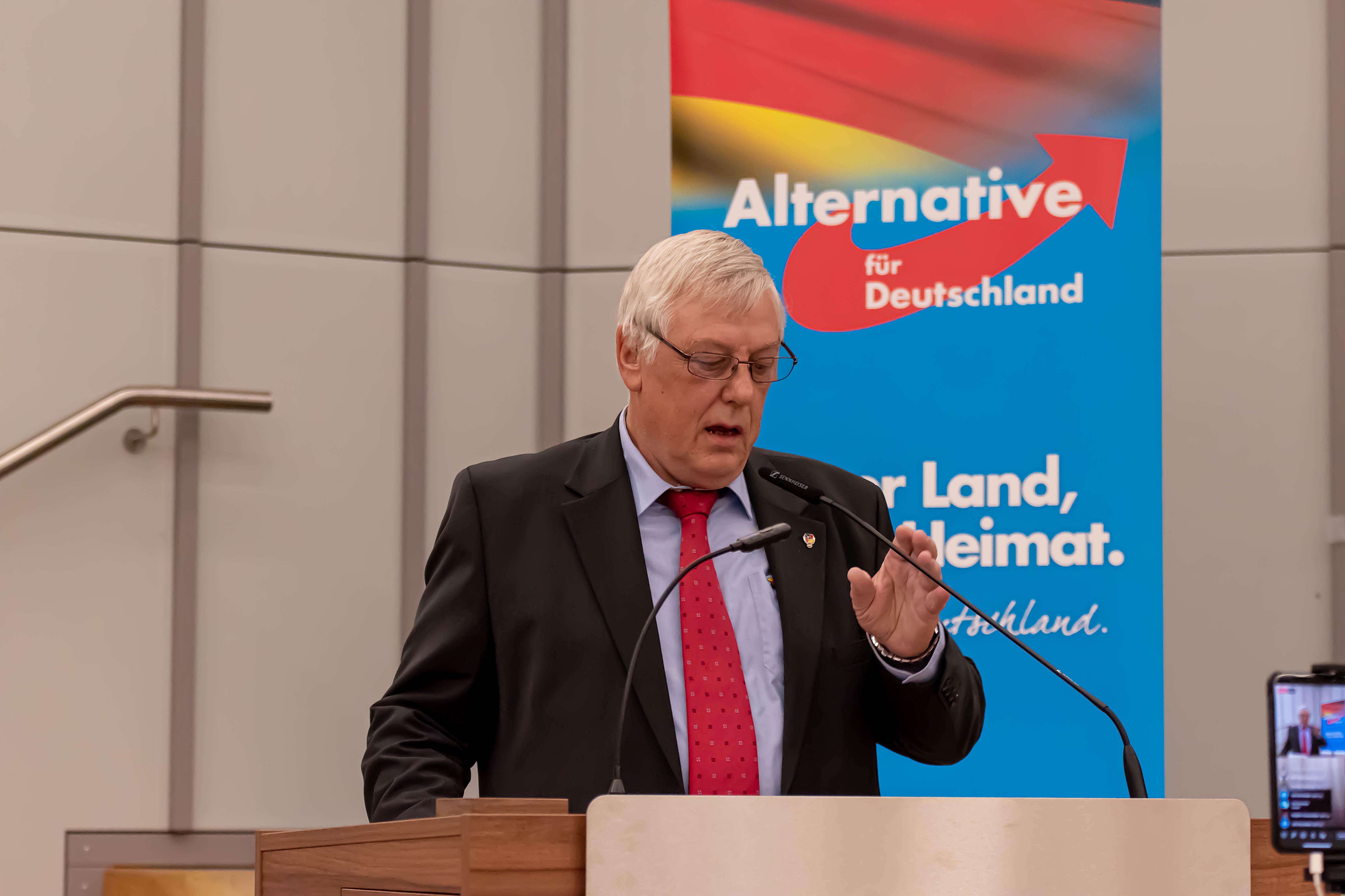Als Gast zugegen war Armin Paulus Hampel, außenpolitischer Sprecher der AfD-Bundestagsfraktion