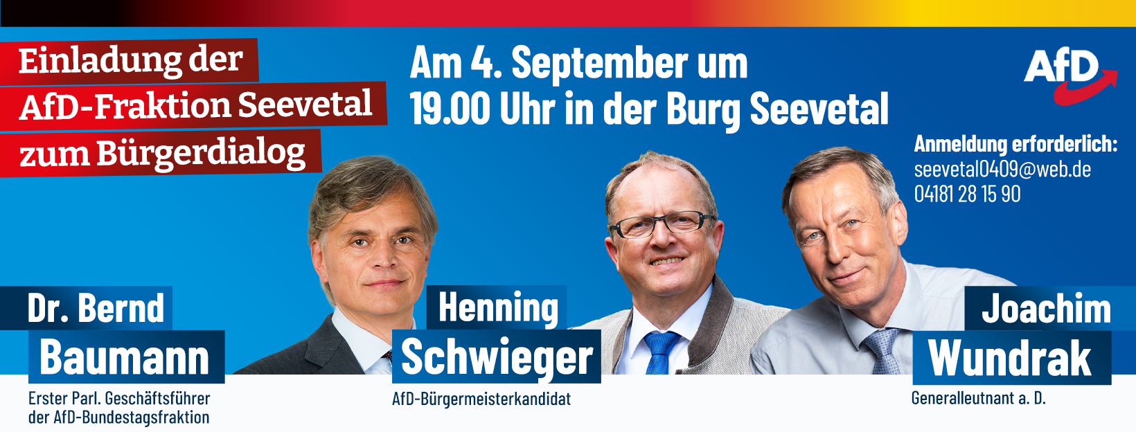 Angesprochen werden sollten interessierte Bürger, die mehr über das politische Wirken der AfD in der Samtgemeinde Seevetal erfahren wollten. Dies gilt natürlich insbesondere hinsichtlich der bevorstehenden Kommunalwahl am 12. September.