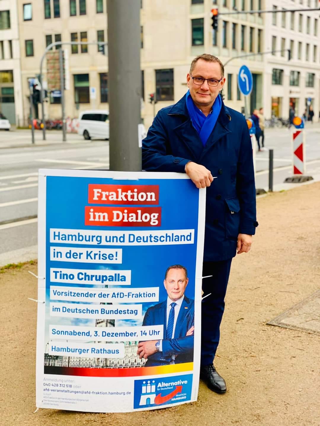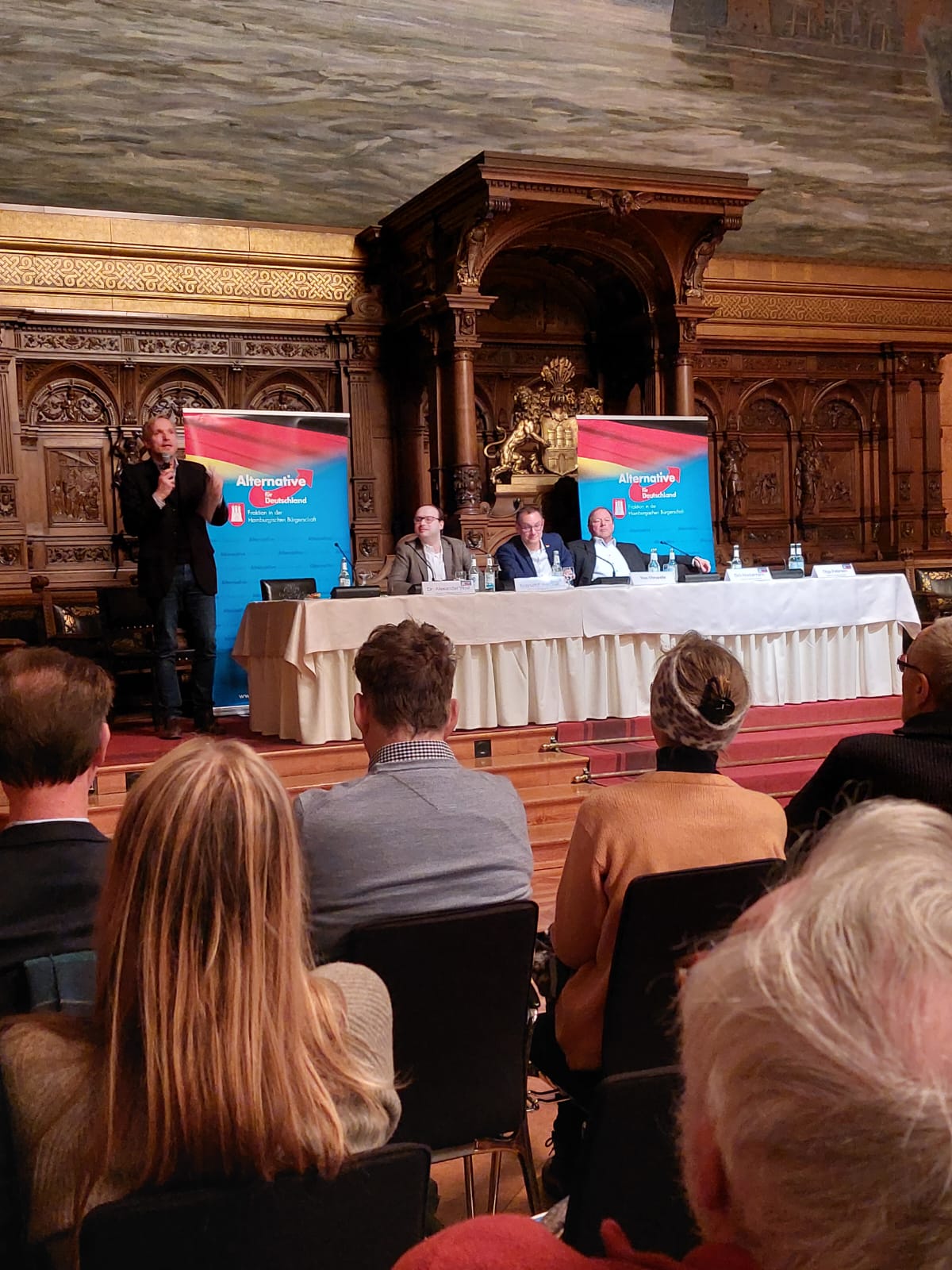 Der Bundessprecher der AfD, Tino Chrupalla, war am 03.12.2022 zu Gast im Hamburger Rathaus. Eingeladen hatte die AfD-Fraktion der Hamburger Bürgerschaft im Rahmen der Veranstaltung „Fraktion im Dialog“.